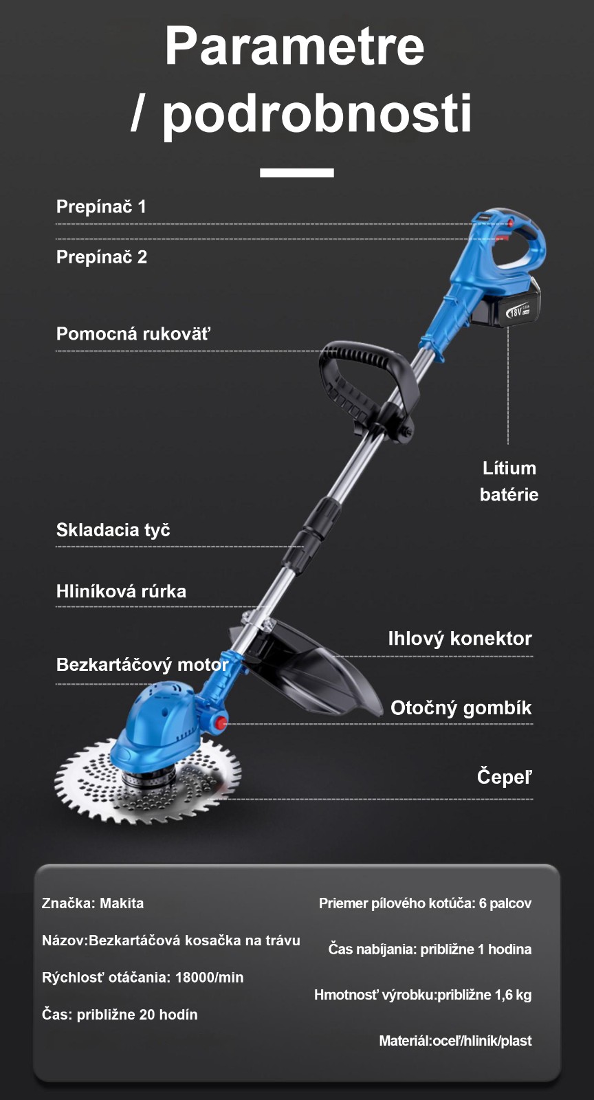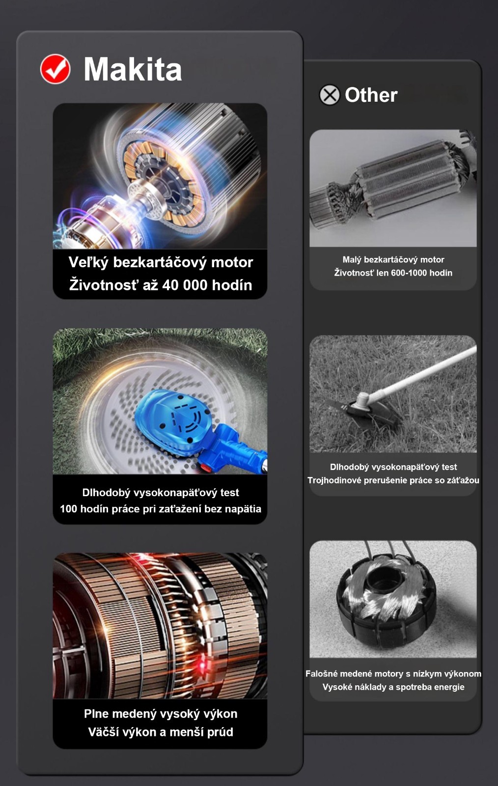 Akumulátorová elektrická sekačka makita seká trávník bez benzínu, bez zástrček, snadno se přenáší, je dostatečně výkonná na celý den a má dvojnásobný výkon!